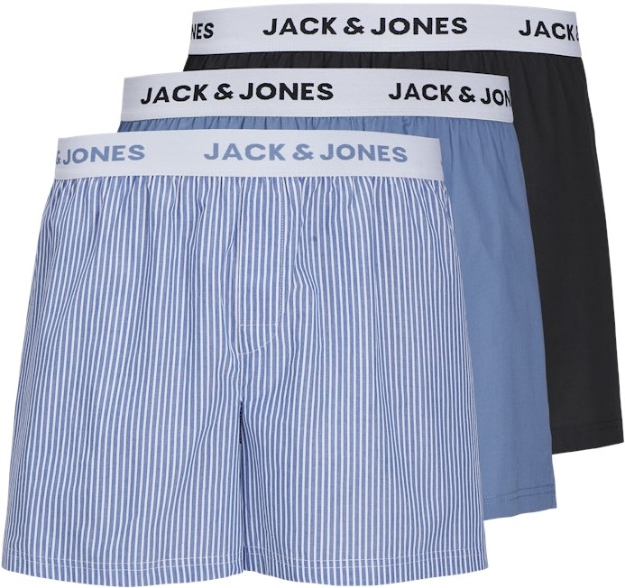 Izmēru tabula - Jack & Jones TOKYO Woven Coronet Blue - Blue Stripes Boxers 3-Pack Black