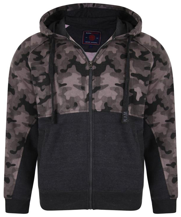 Izmēru tabula - Kam Jeans 7036 Camo Print Full Zipper Hoodie Charcoal