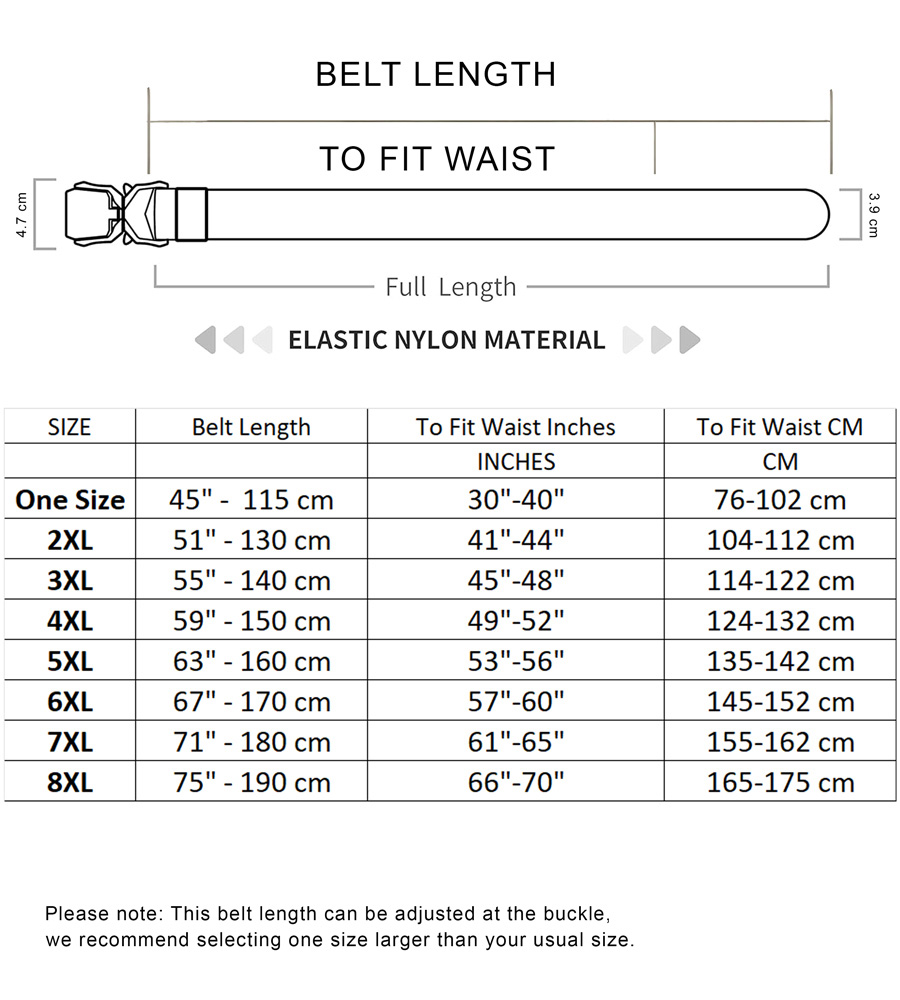Izmēru tabula - D555 Dale Tactical Stretch Webbing Belt with Heavy Duty Quick Release Buckle Khaki
