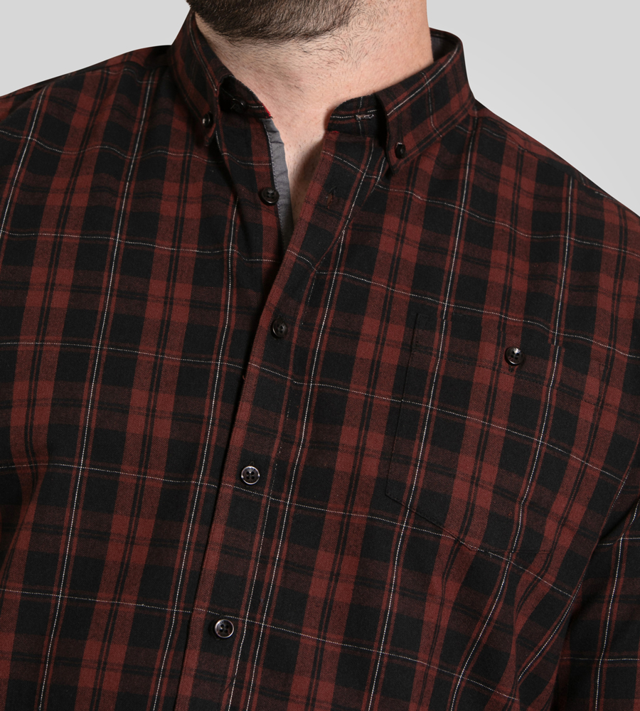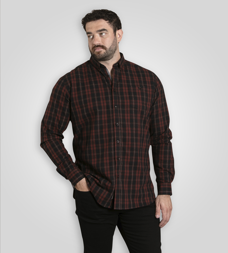 Izmēru tabula - D555 Horsham Long Sleeve Shirt with Chest Pocket Burgundy/Black Check