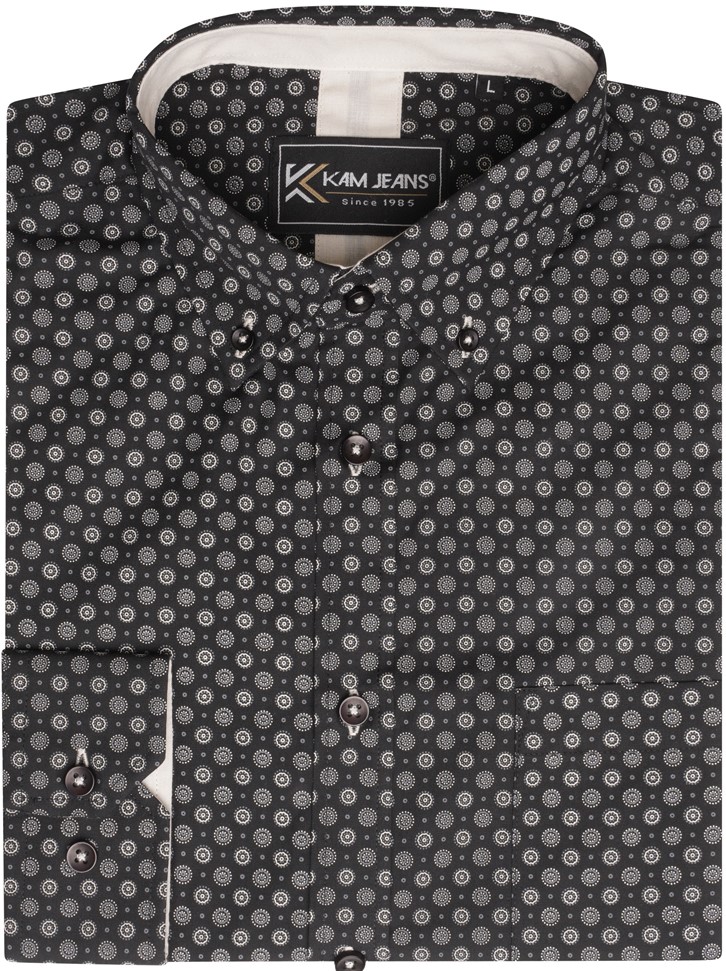 Izmēru tabula - Kam Jeans 6296 Long Sleeve All Over Geo Print Shirt Black