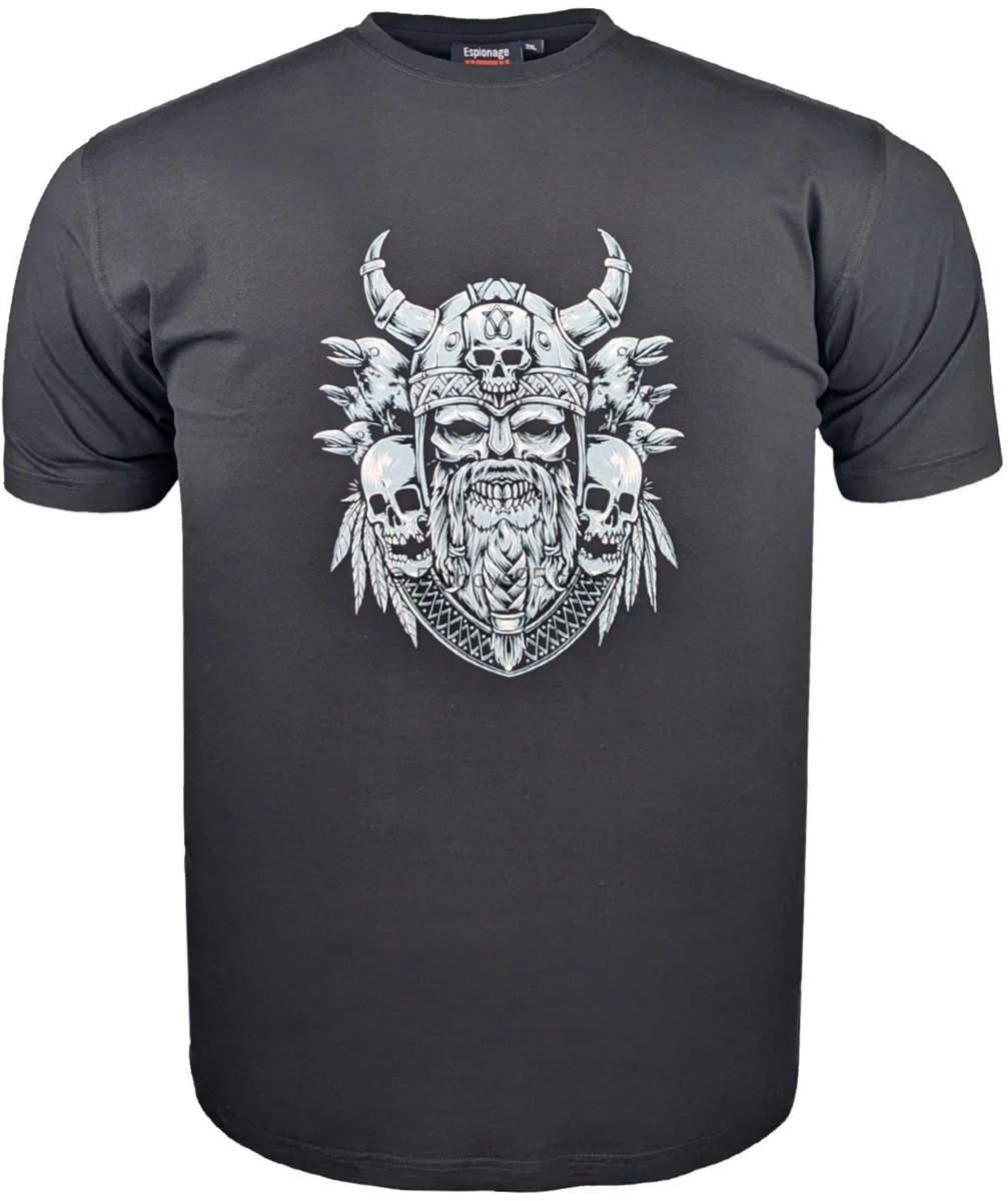 Izmēru tabula - Espionage T441 Viking Skull Print T-Shirt Black
