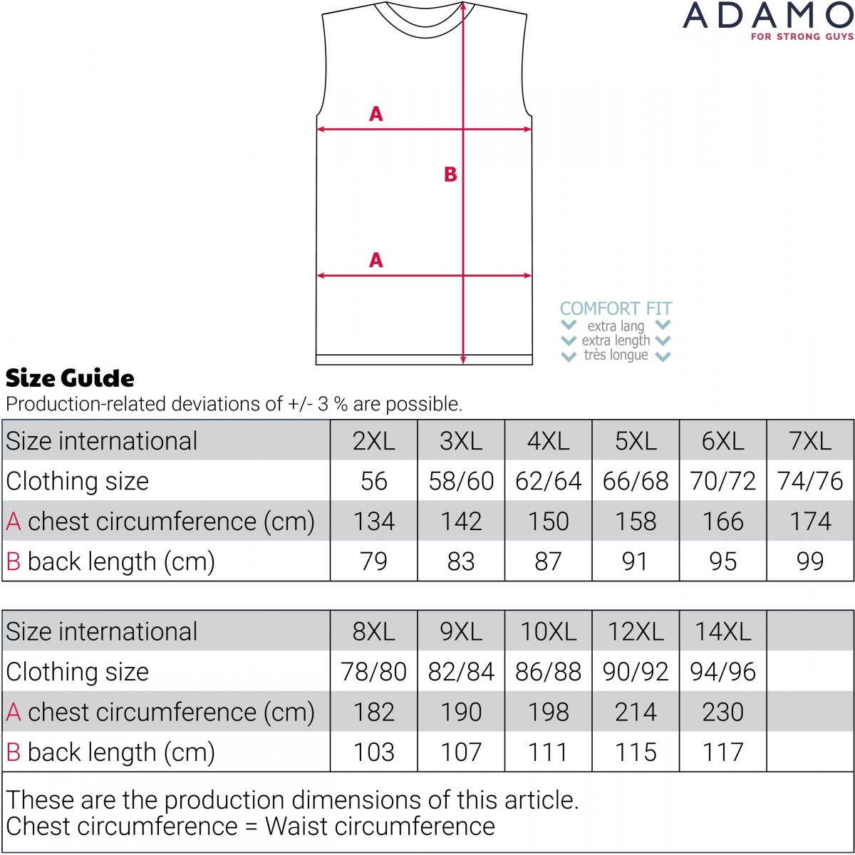 Izmēru tabula - Adamo Motiv Rock and Roll Tank Top Black