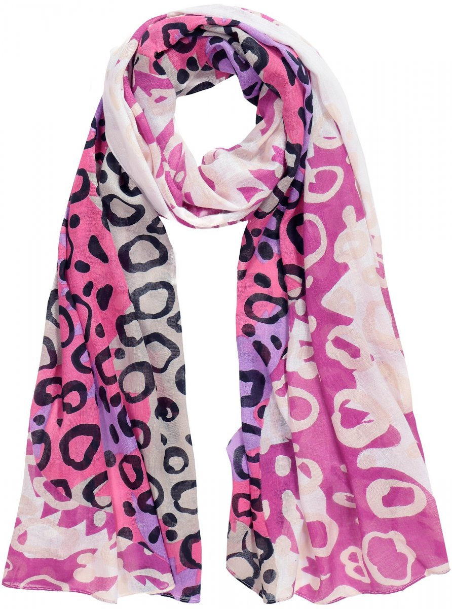 Ulla Popken Rainbow Leopard Print Scarf Pink