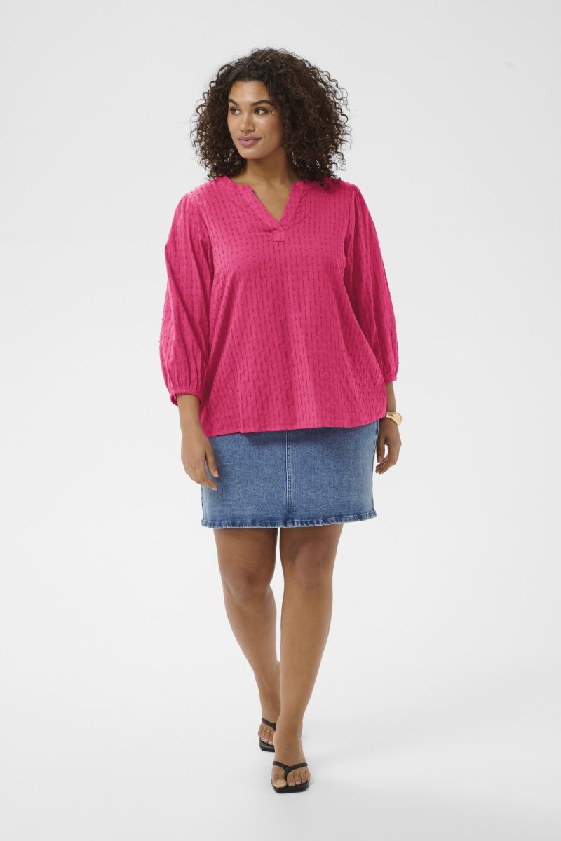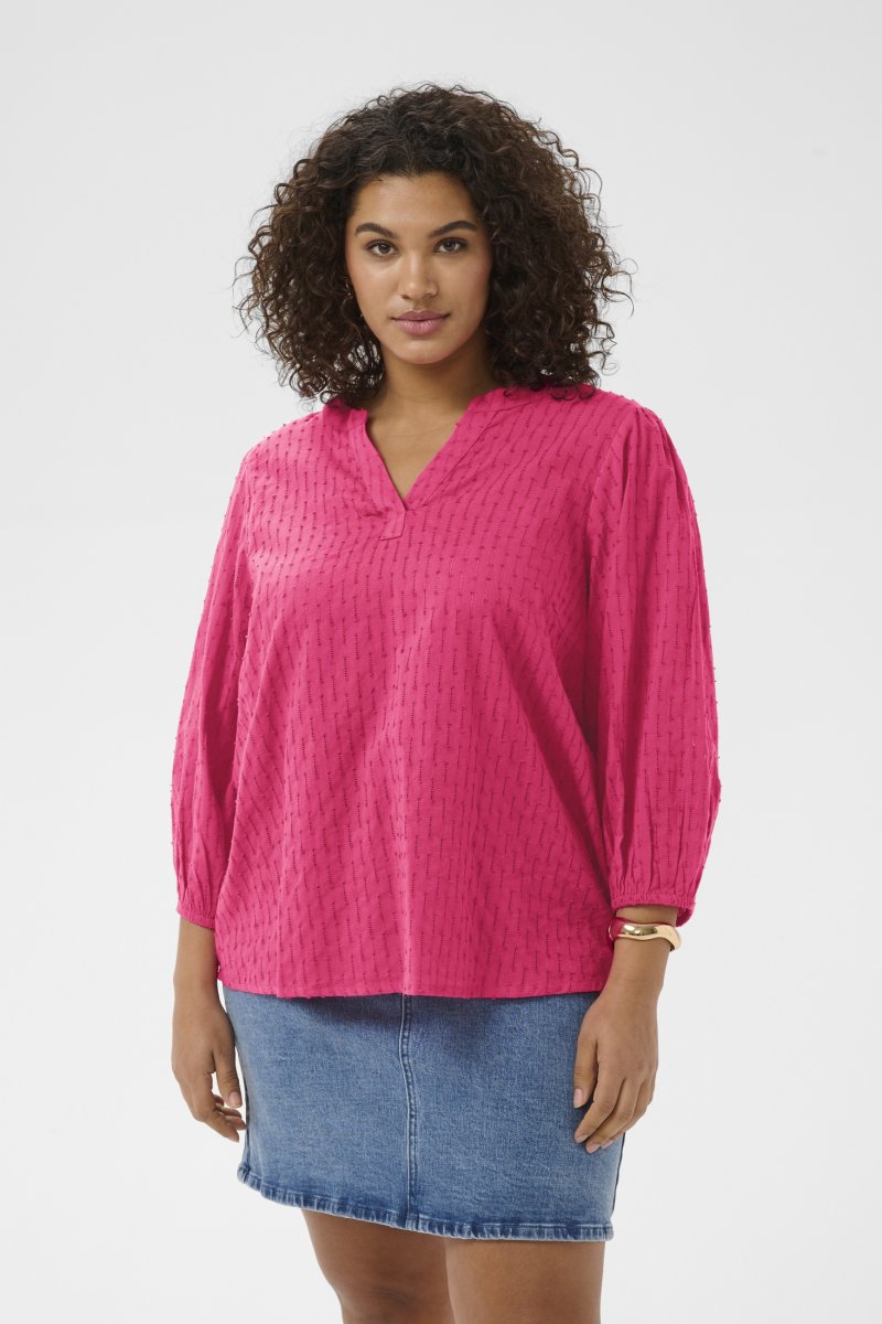 BlūzePieejams izmēros 42–54No zīmola Kaffe CurveRažots no 100% kokvilnasStandarta piegriezumsKrāsa ir violetaKlikšķiniet šeit, lai apskatītu izmēru vadlīnijas