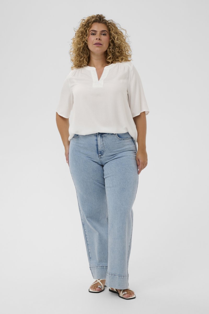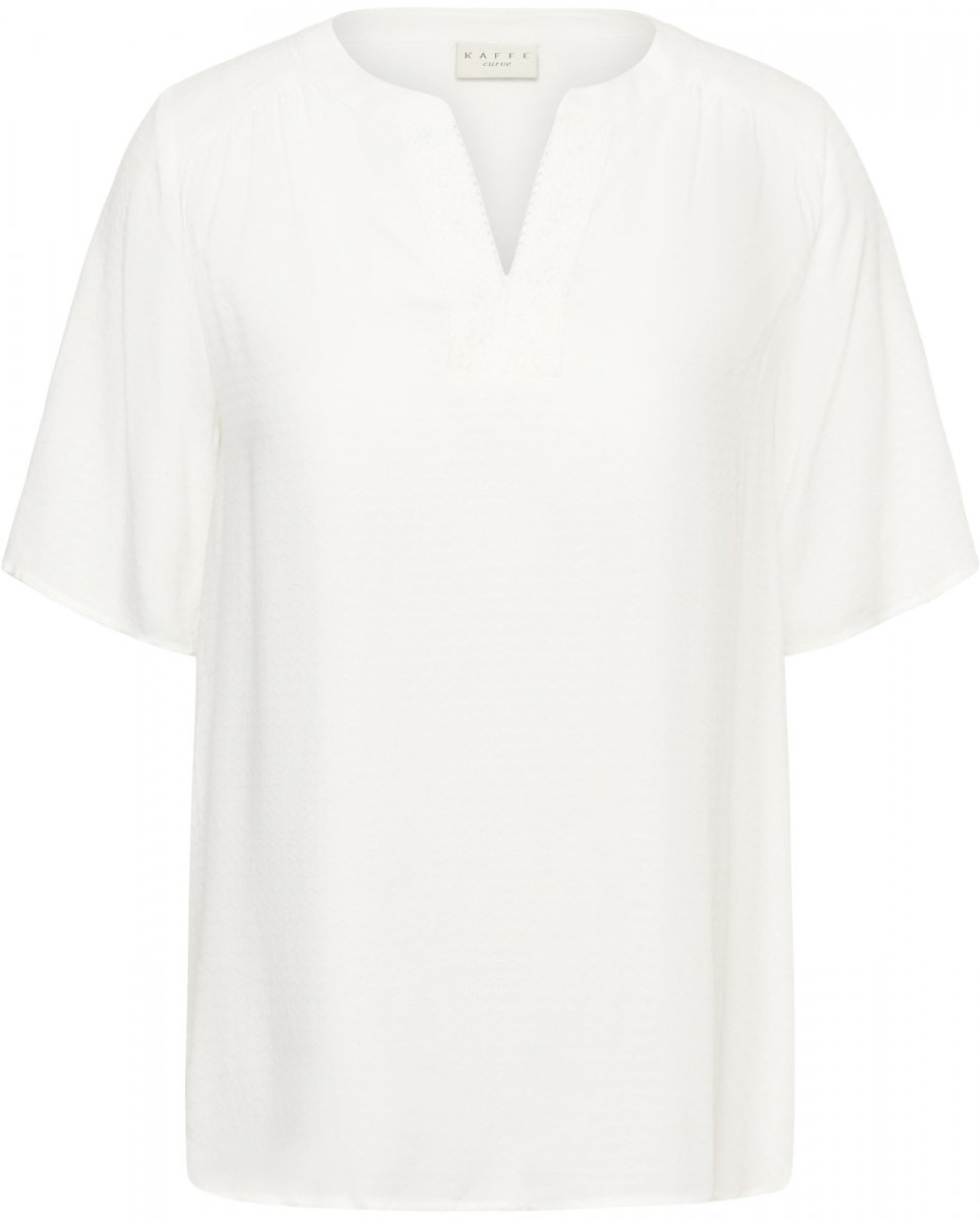 BlūzePieejams izmēros 42–54No zīmola Kaffe CurveMateriāls: 100 % viskozeStandarta piegriezumsKrāsa ir baltaKlikšķiniet šeit, lai apskatītu izmēru vadlīnijas