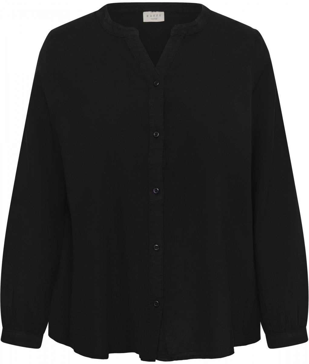 Krekls ar garām piedurknēmPieejams izmēros 42–54No zīmola Kaffe CurveRažots no 100% kokvilnasStandarta piegriezumsKrāsa ir melna