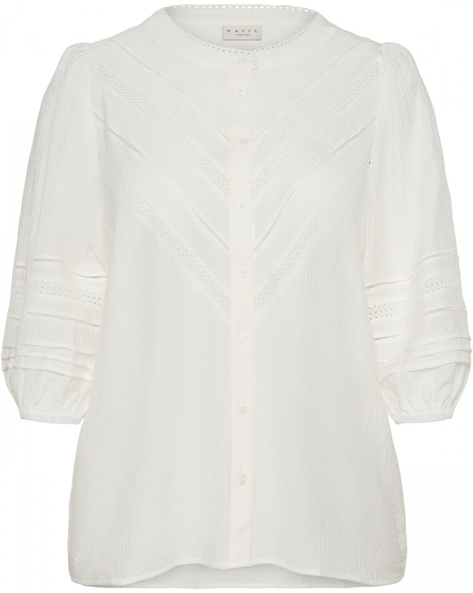 Krekls ar garām piedurknēmPieejams izmēros 42–54No zīmola Kaffe CurveMateriāls: 80 % viskoze, 20 % poliamīdsStandarta piegriezumsKrāsa ir baltaKlikšķiniet šeit, lai apskatītu izmēru vadlīnijas