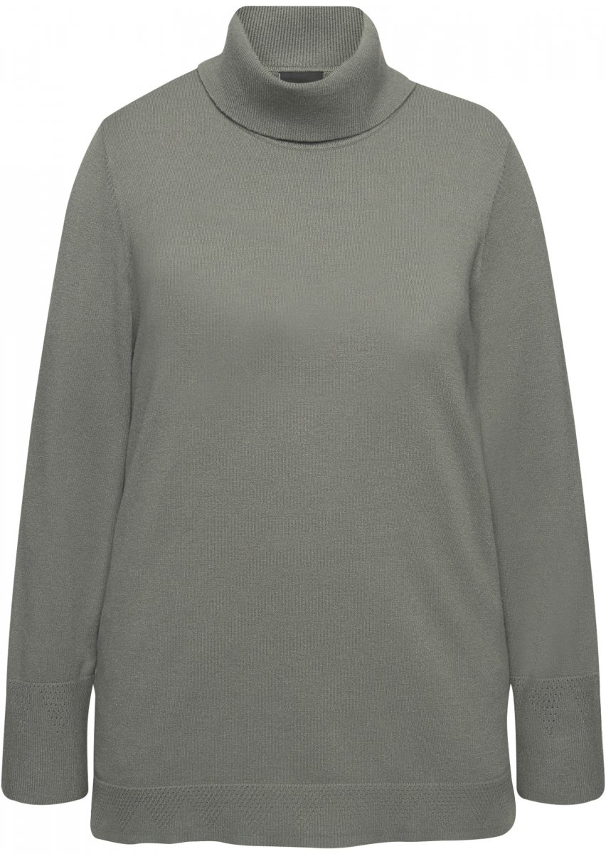 Ulla Popken Turtleneck Ribbed Trim Long Sleeve Sweater Grey