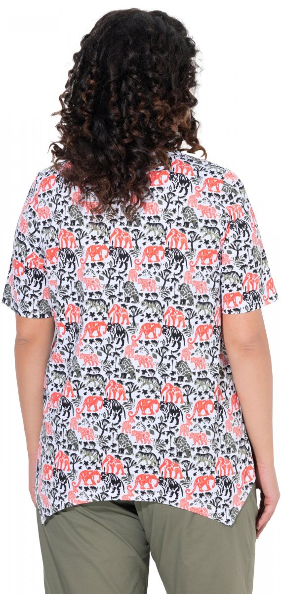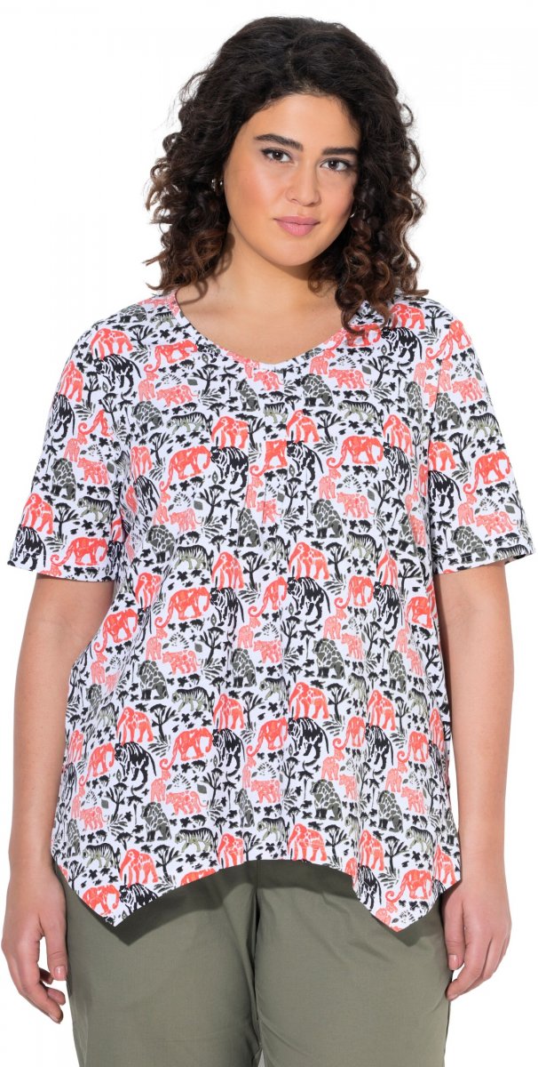 Izmēru tabula - Ulla Popken Half-sleeve A-line V-neck Pointed Hem Animal Pattern T-shirt Snow White