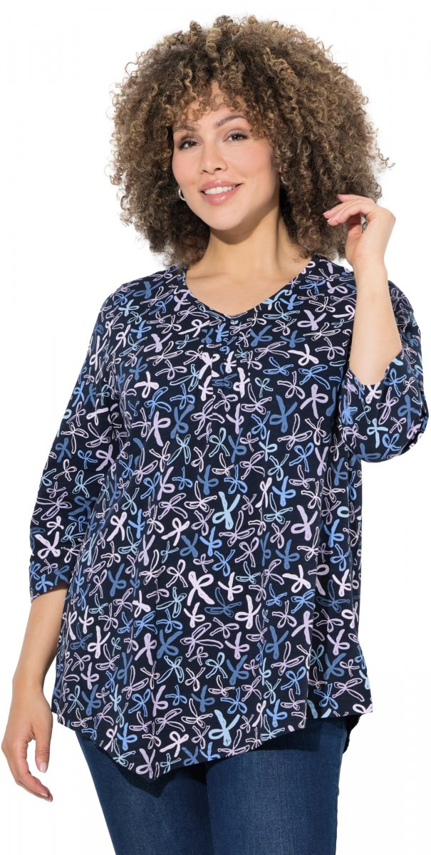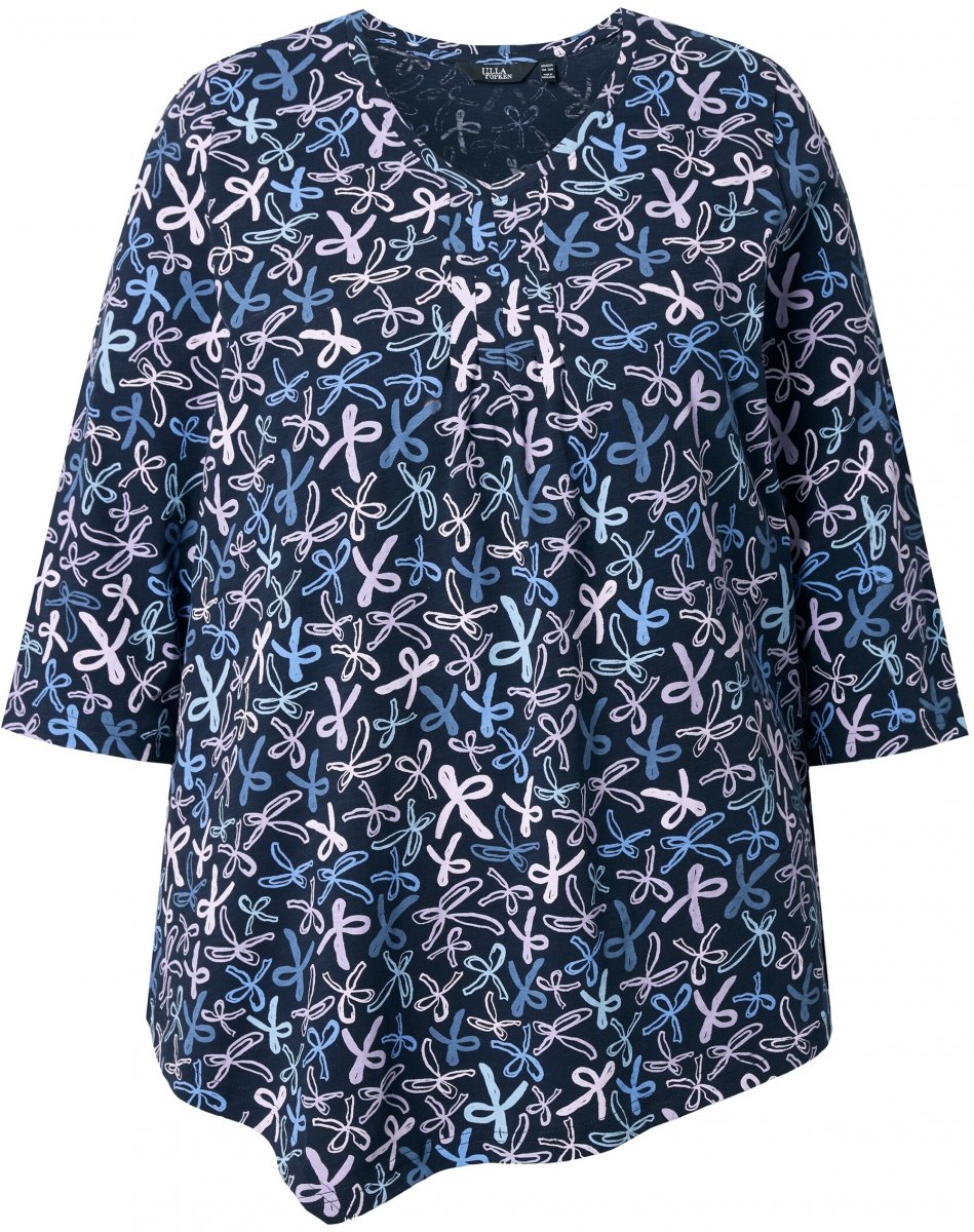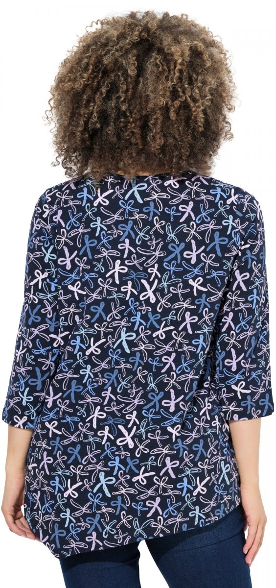 Izmēru tabula - Ulla Popken Ribbon Print 3/4 Sleeve Asymmetric Tee Navy