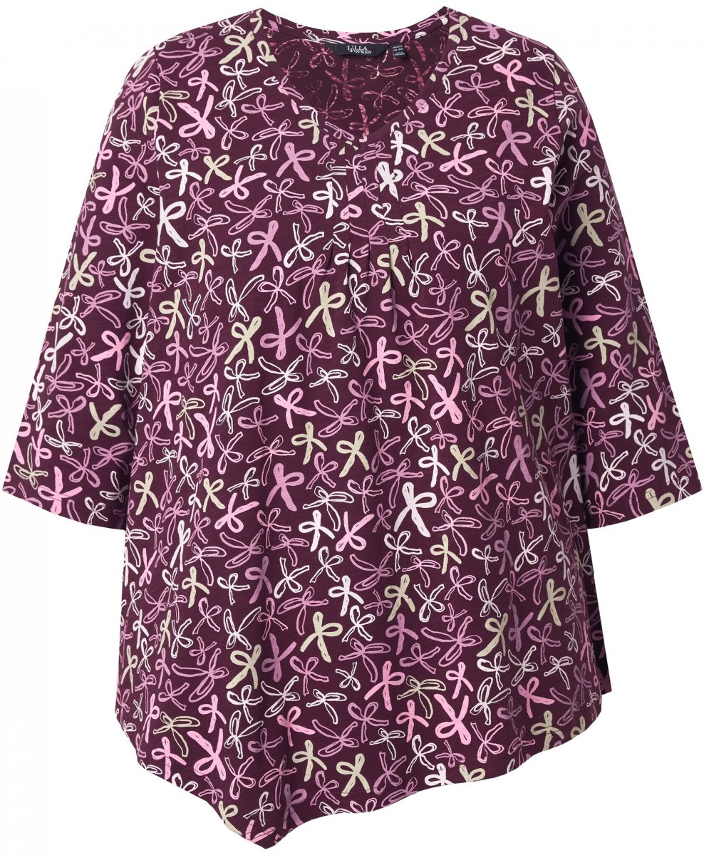 Izmēru tabula - Ulla Popken Ribbon Print 3/4 Sleeve Asymmetric Tee Plum