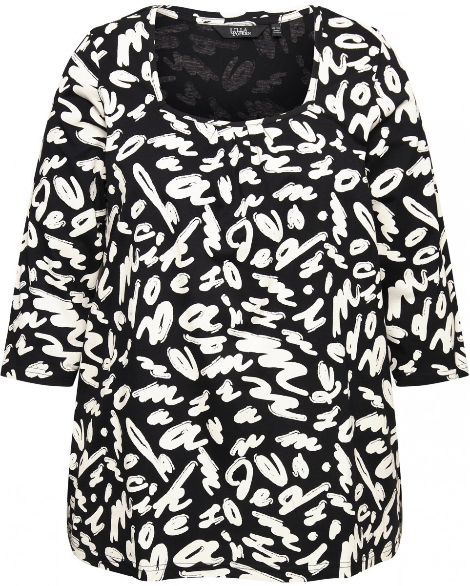 Izmēru tabula - Ulla Popken Scribble Print Square Neck 3/4 Sleeve Tee Black