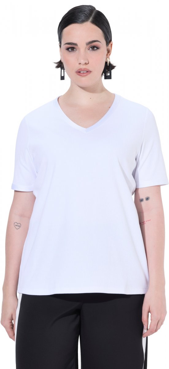 Izmēru tabula - Ulla Popken Satin Trimmed Ribbed Jersey Short Sleeve T-Shirt Snow White