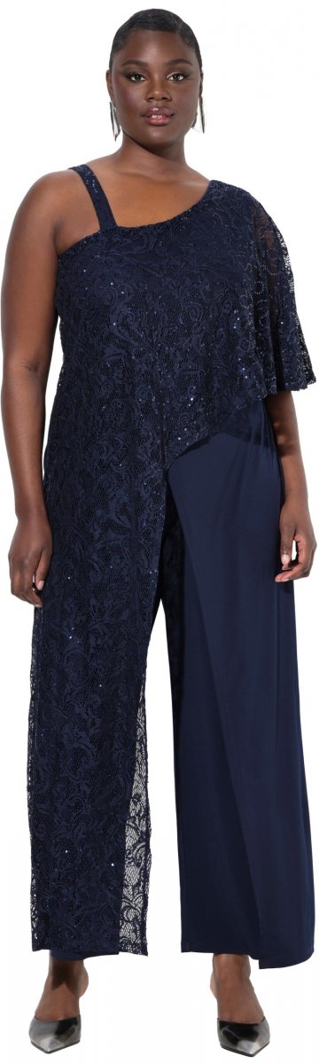 Ulla Popken Asymmetric Lace Panel Jumpsuit Navy