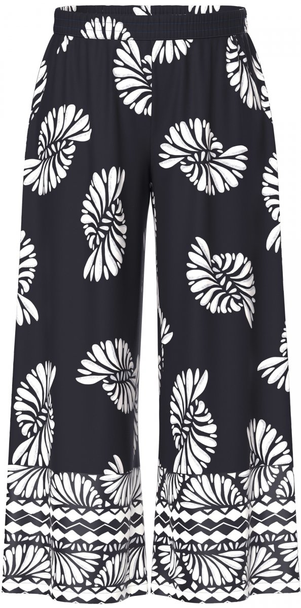 Ulla Popken Fossil Print Elastic Waist Palazzo Pants Black