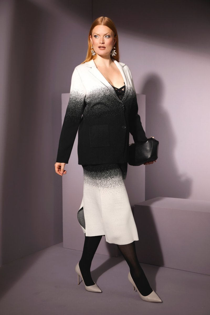 Izmēru tabula - Ulla Popken Adīts Žakete Ar Krāsu Pāreju Melna/Balta